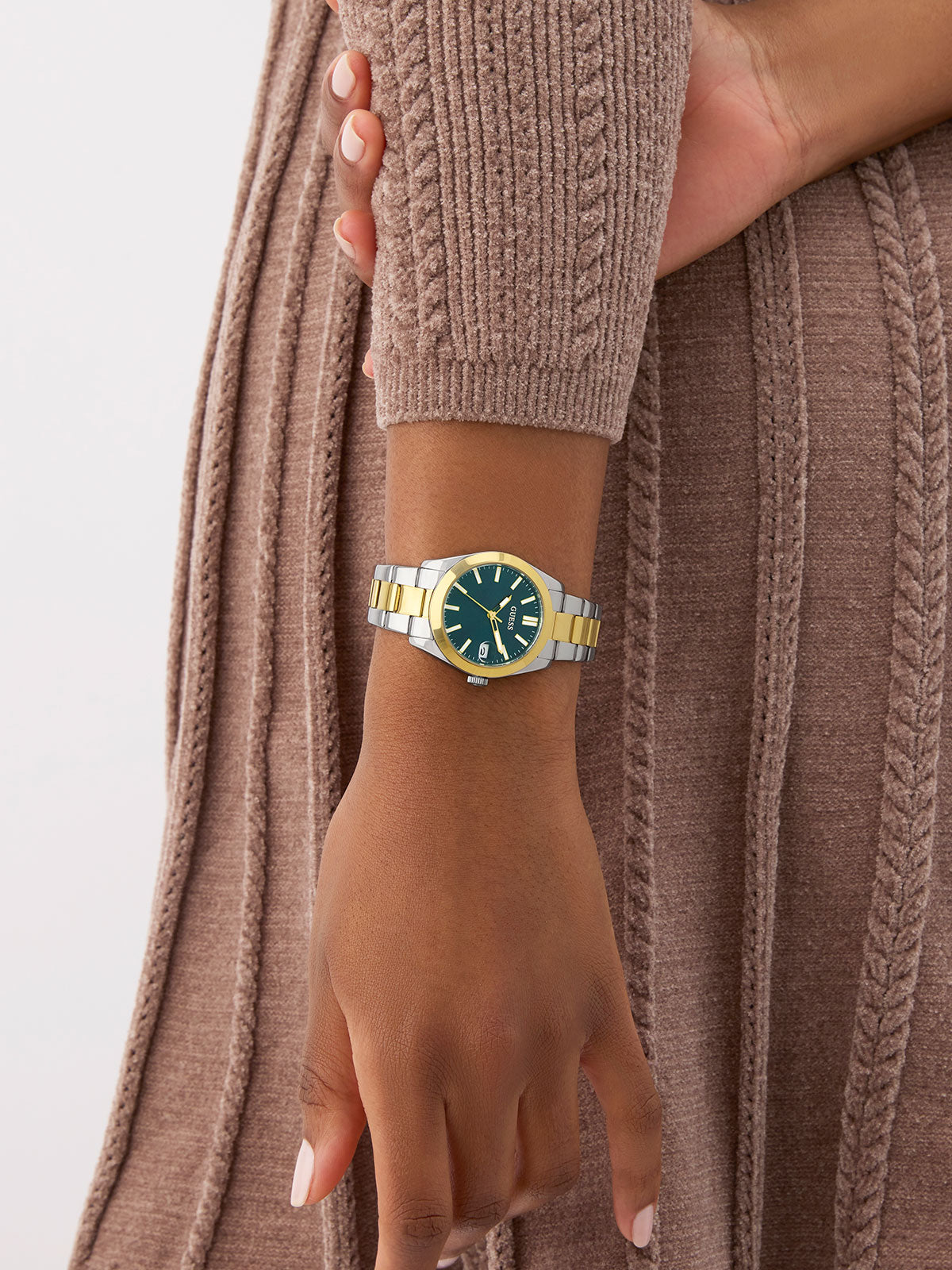 GUESS ŽENSKI SAT "ALICE " GW094L3 U DVE BOJE SREBRO/ŽUTO ZLATO SA DATUMOM, ZELENI BROJČANIK