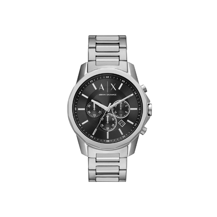 44mm Armani Exchange muški sat od nerđajućeg čelika sa crnim hronograf brojčanikom.