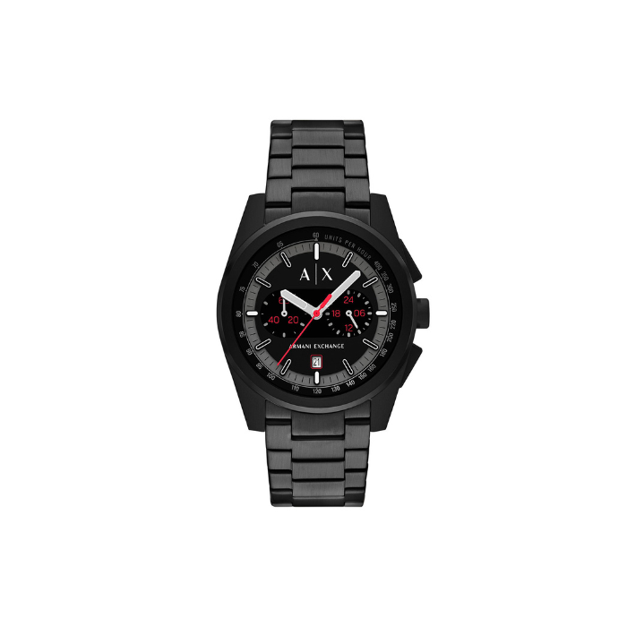 Armani Exchange muški kvarcni sat ima 42mm crno kućište, crni brojčanik sa prikazom datuma, mineralno staklo i crnu narukvicu od nerđajućeg čelika. Vodootpornost sata je 5 ATM