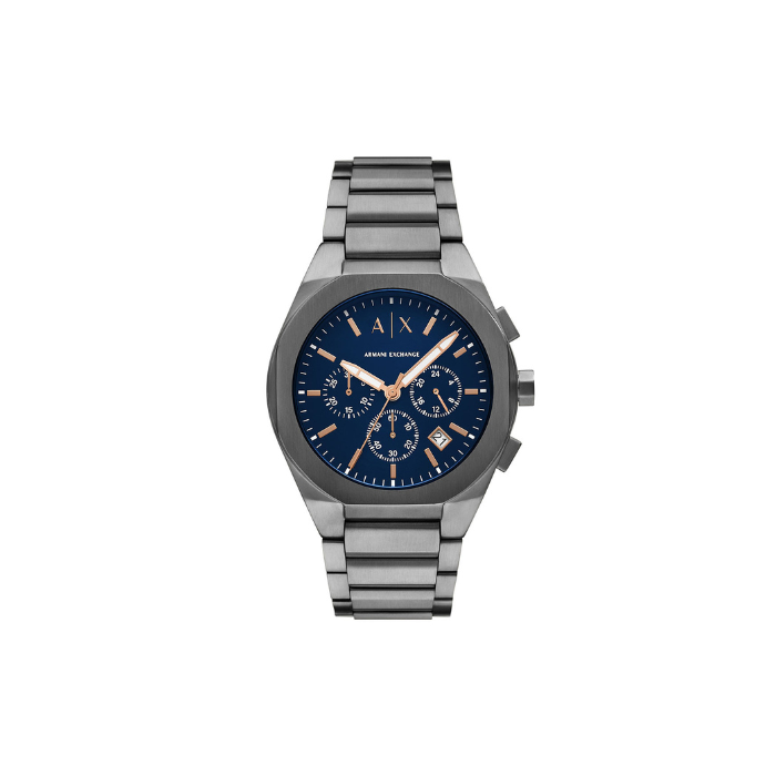 Materijal kućišta: nerđajući čelik Pol: muški Brendovi: Armani Exchange Funkcije: datum Boja brojčanika: plava Boja kućišta: siva Boja narukvice: siva Materijal narukvice: nerđajući čelik Oblik kućišta: okruglo Proizvodjac: FOSSIL Europe GmbH Tip sata: analogni Veličina kućišta (mm): 42 Vodootpornost: 5 ATM Vrsta mehanizma: kvarcni Vrsta stakla: mineralno
