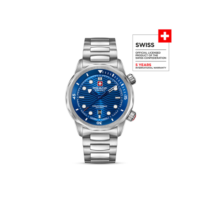 SWISS MILITARY HANOWA BREAKWATER SMWGH0006403: SWISS MADE KVARCNI MUŠKI SAT, 300m VODOOTPORNOST, PLAVI BROJČANIK