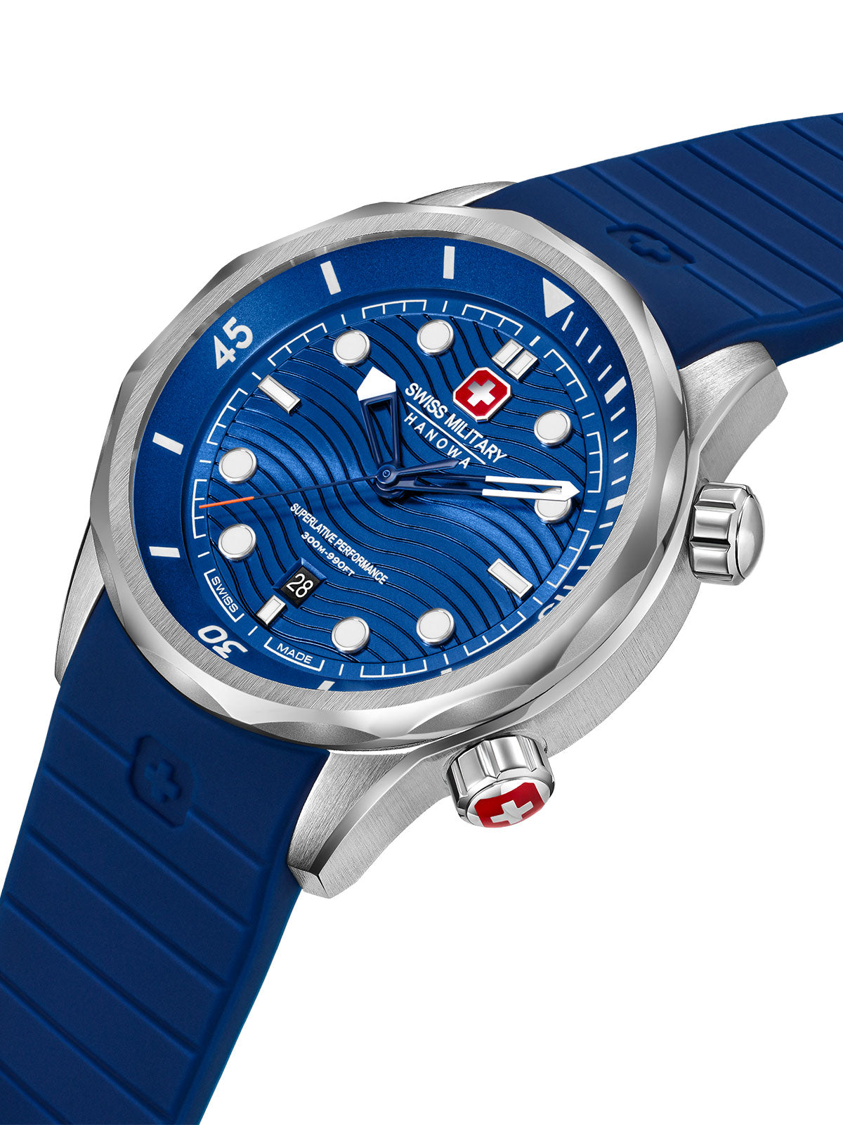 SWISS MILITARY HANOWA BREAKWATER SMWGN0006401: SWISS MADE KVARCNI MUŠKI SAT, 300m VODOOTPORNOST, TEGET SILIKONSKA NARUKVICA