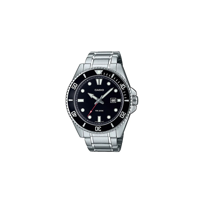 CASIO COLLECTION: MDV-107D-1A1VEF ANALOGNI SREBRNI MUŠKI SAT SA CRNIM TOP RINGOM, RONILAČI SAT VODOOTPORAN DO 200M