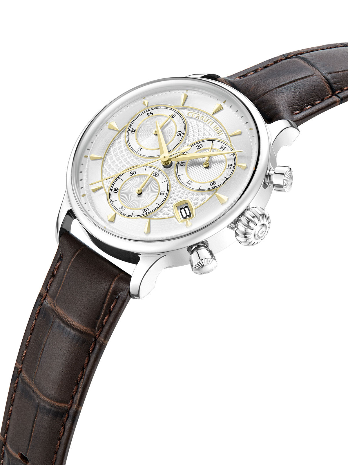 CERRUTI 1881 MUŠKI SAT DERVIO CIWGC0073302, MULTIFUNCTION, SREBRNI BROJČANIK, BRAON KOŽNA NARUKVICA