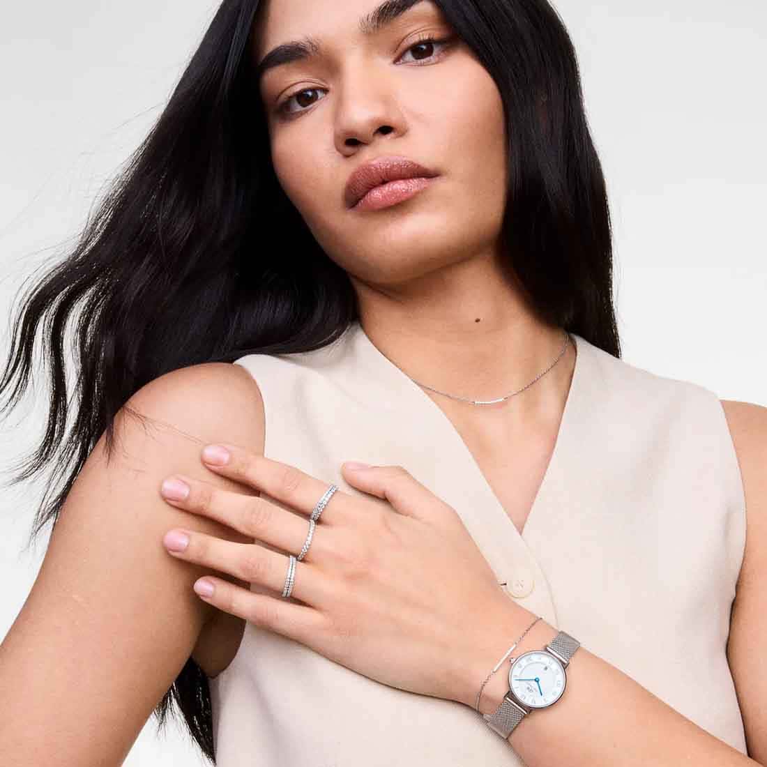 Brend: Daniel Wellington Pol: Ženski Vrsta proizvoda: Ručni sat Mehanizam: Kvarcni Materijal kućišta: Nerđajući čelik Boja kućišta: Srebrna Prečnik kućišta: 28 mm Boja brojčanika: Bela Materijal narukvice: Nerđajući čelik (mesh) Boja narukvice: Srebrna Staklo: Mineralno Vodootpornost: 3 ATM