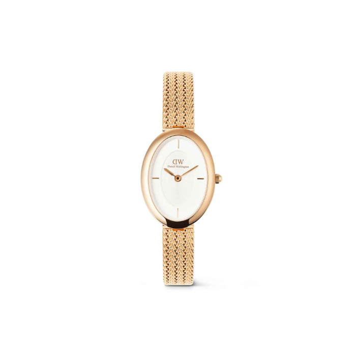 Brend: Daniel Wellington Pol: Ženski Vrsta proizvoda: Ručni sat Mehanizam: Kvarcni Materijal kućišta: Nerđajući čelik Boja kućišta: Roze zlatna Dimenzije kućišta: 22 × 28 mm Boja brojčanika: Bela Materijal narukvice: Nerđajući čelik (mesh) Boja narukvice: Roze zlatna Staklo: Mineralno Vodootpornost: 3 ATM