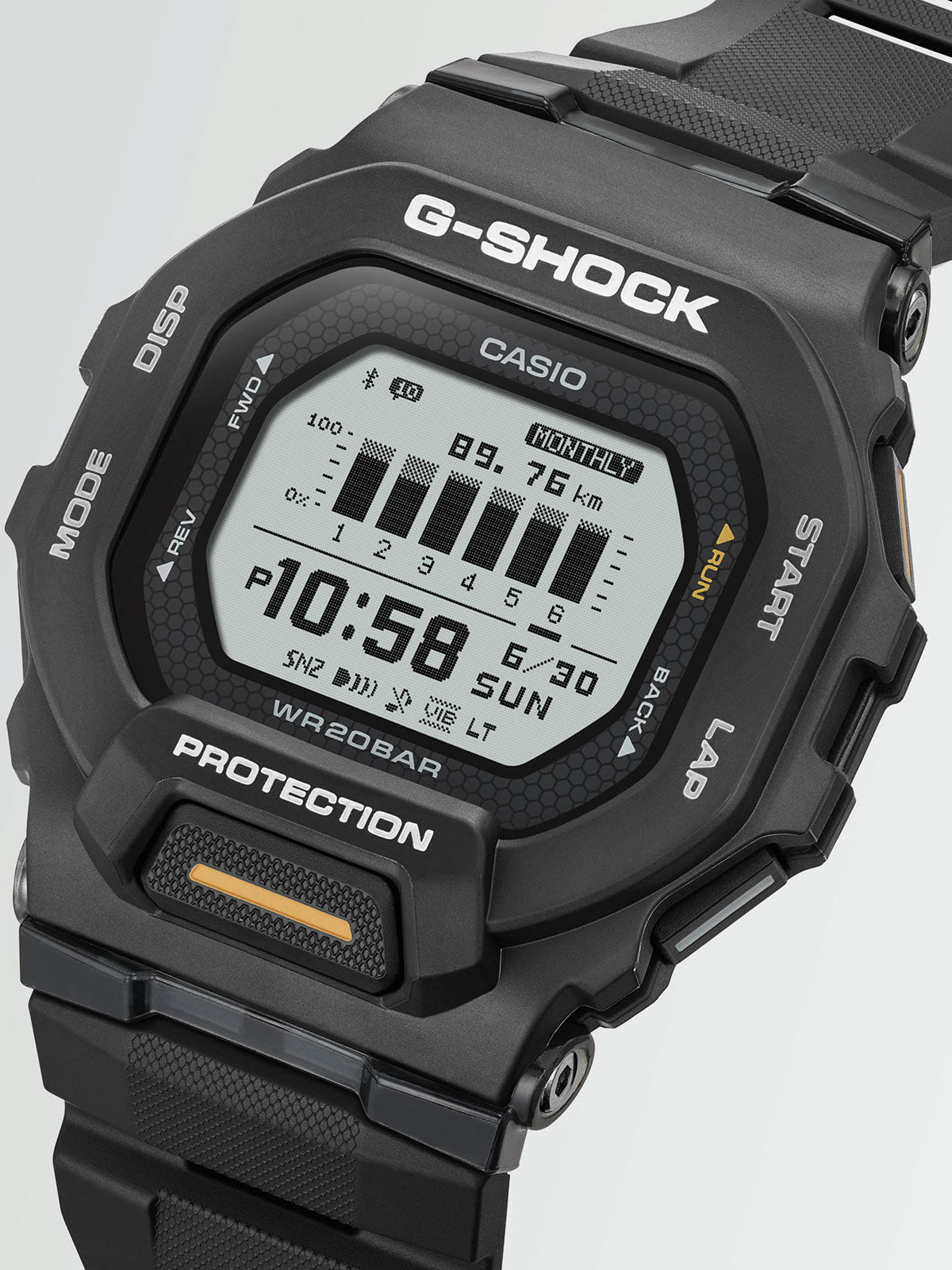 Sportska linija G-SHOCK-a, G-SQUAD, prepuna je funkcija korisnih za trening, uključujući merenje udaljenosti i povezivanje sa pametnim telefonom. MIP tehnologija obezbeđuje odličnu vidljivost displeja čak i pri jako svetlim spoljnim uslovima ili direktnoj sunčevoj svetlosti.
