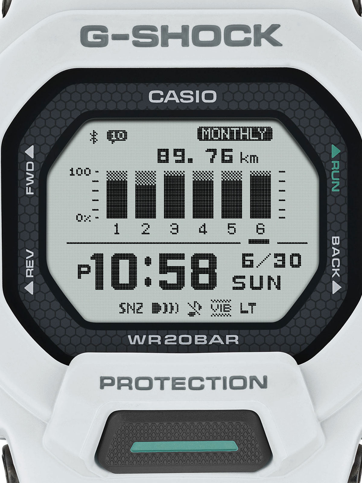 Sportska linija G-SHOCK-a, G-SQUAD, prepuna je funkcija korisnih za trening, uključujući merenje udaljenosti i povezivanje sa pametnim telefonom. MIP tehnologija obezbeđuje odličnu vidljivost displeja čak i pri jako svetlim spoljnim uslovima ili direktnoj sunčevoj svetlosti.