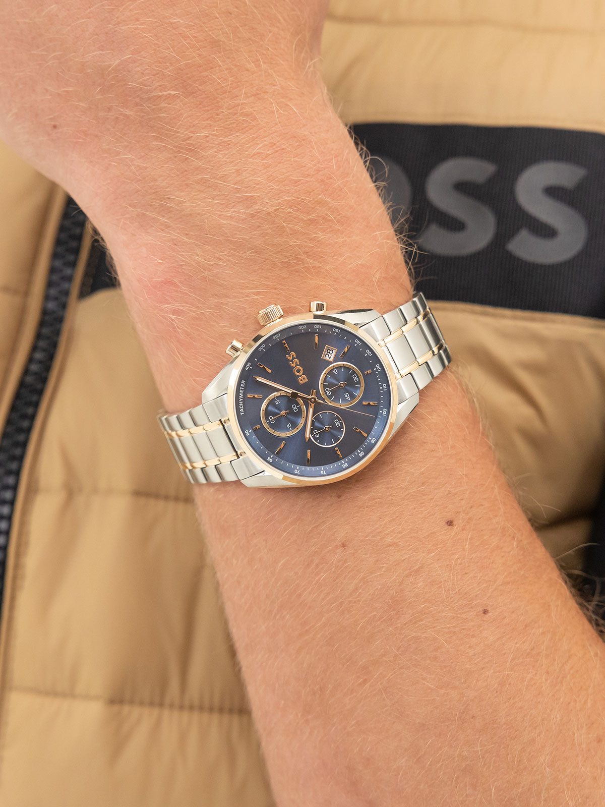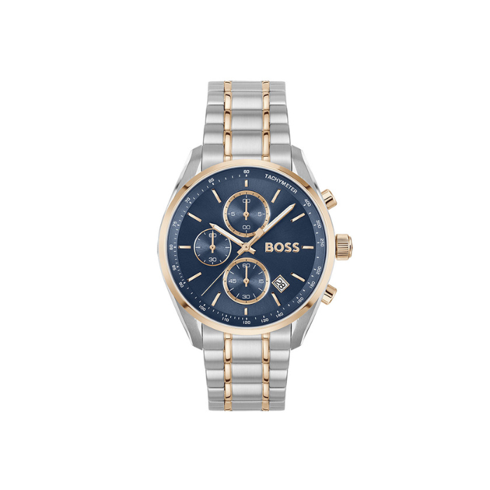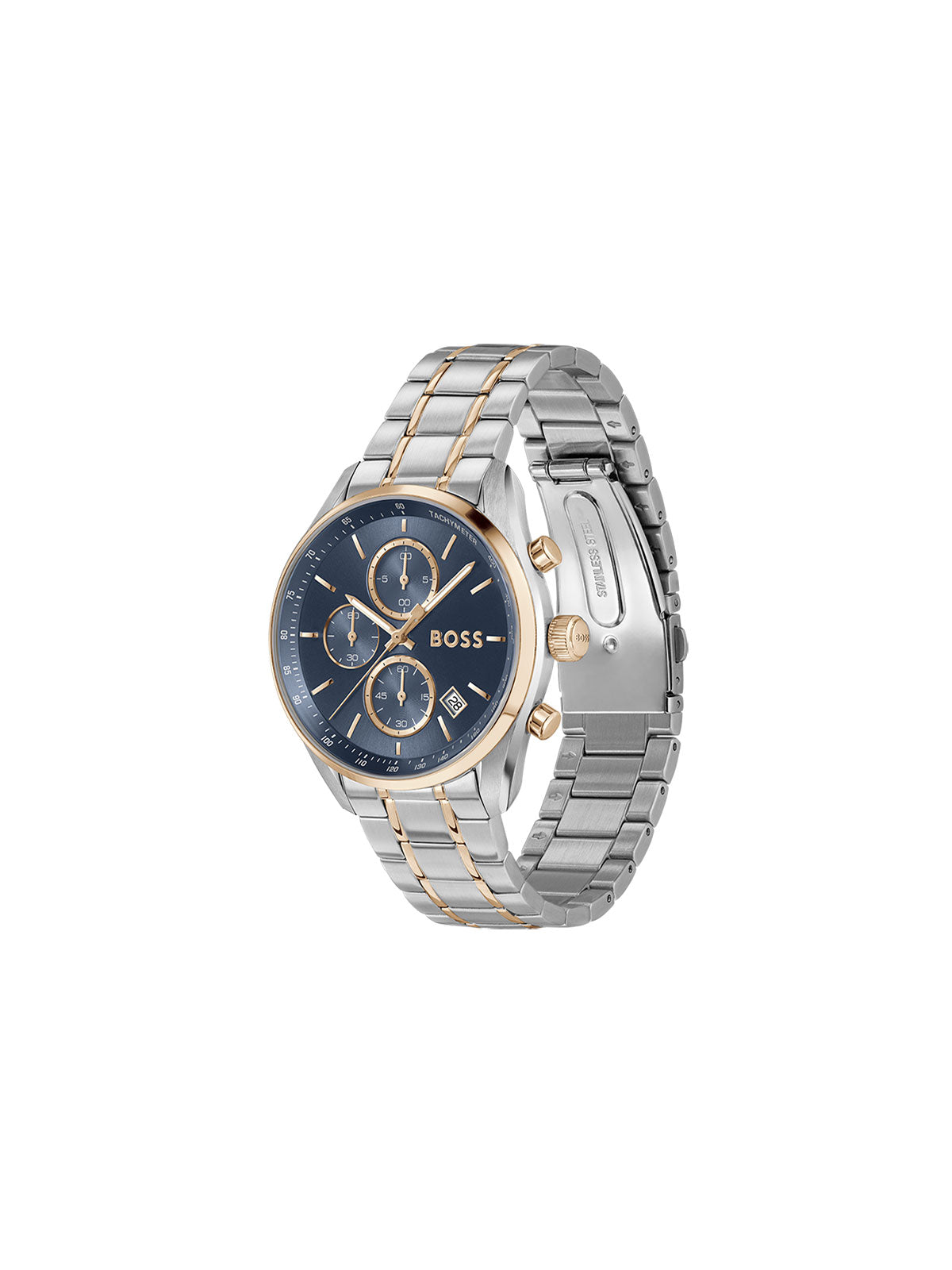 GRAND PRIX 40 1514260: BOSS Watches MUŠKI HRONOGRAF SA PLAVIM BROJČANIKOM, U BOJI SREBRA I ROZE ZLATA