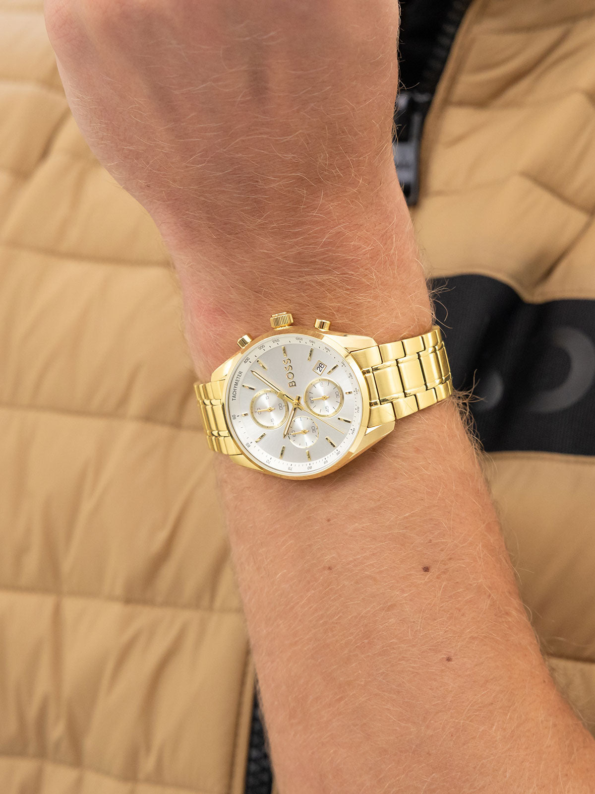 GRAND PRIX 40 1514261: BOSS Watches MUŠKI HRONOGRAF SA BELIM BROJČANIKOM, U BOJI ŽUTOG ZLATA