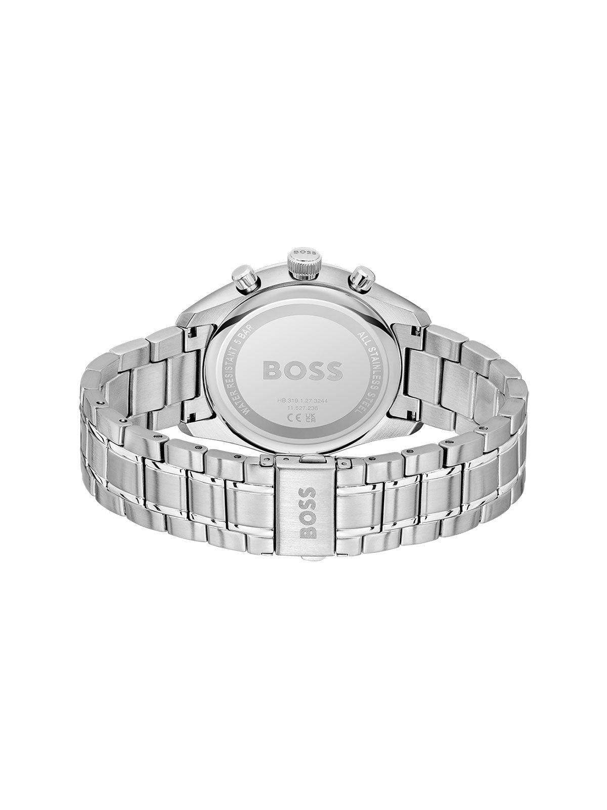 Izrađen od srebrnog čelika, upotpunjenog brušenim zelenim brojčanikom, ovaj BOSS muški sat ima luksuzan izgled inspirisan trkama. Integrisana narukvica sa pet karika.
