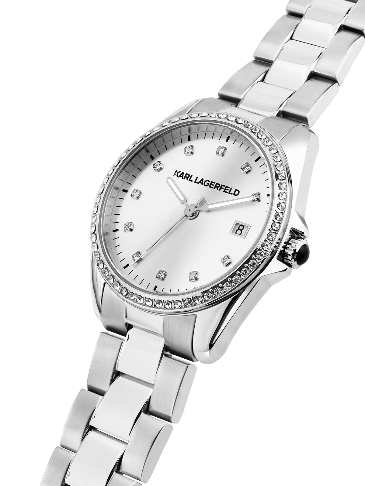 KARL LAGERFELD ŽENSKI SAT ROUND ESSENTIALS R0553101510 U BOJI SREBRA SA CIRKONIMA