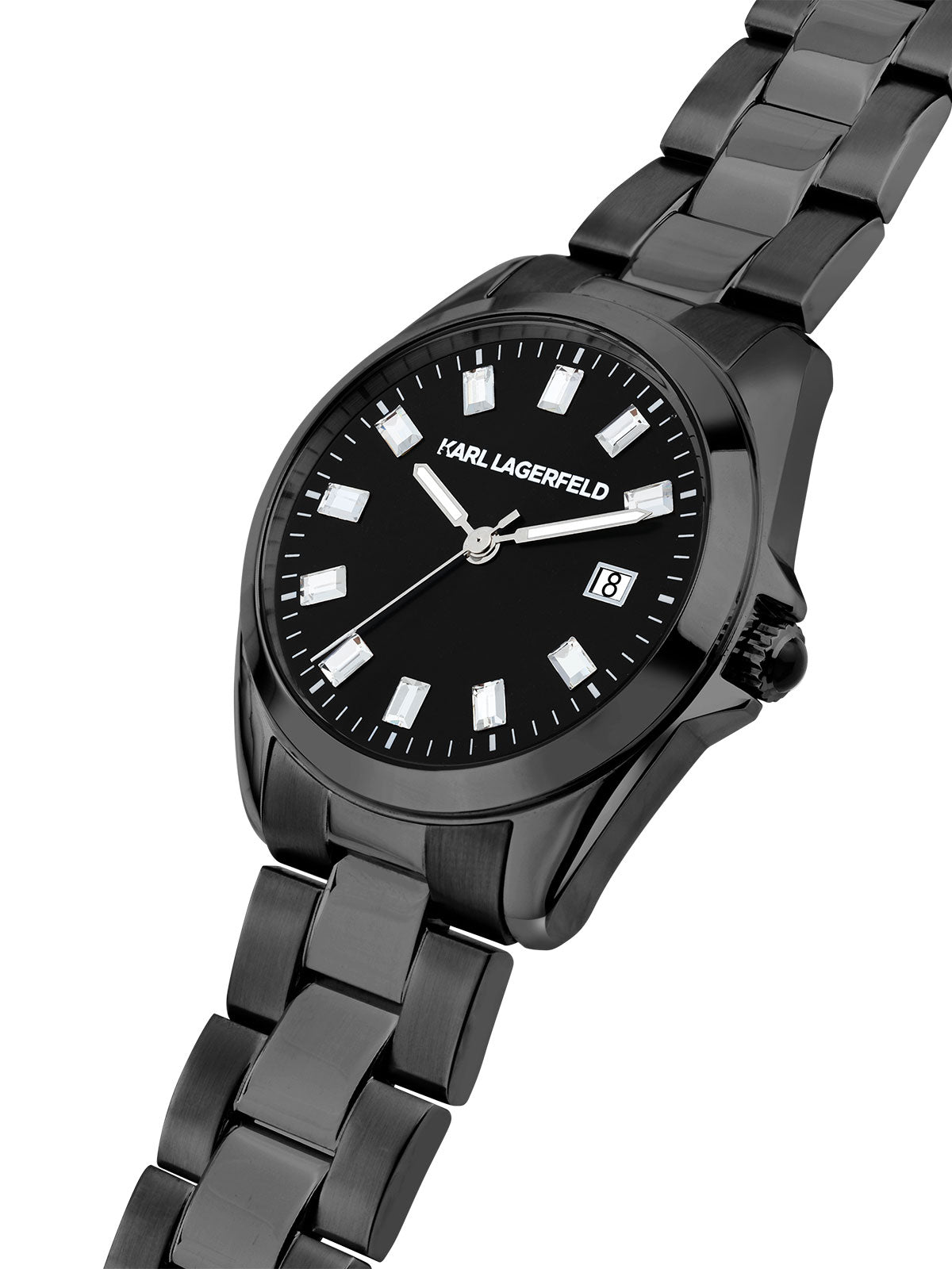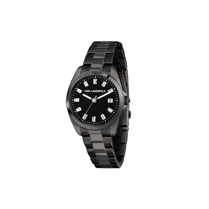 KARL LAGERFELD ŽENSKI SAT ROUND ESSENTIALS R0553101513 U CRNOJ BOJI, BAGUETTE CIRKONI