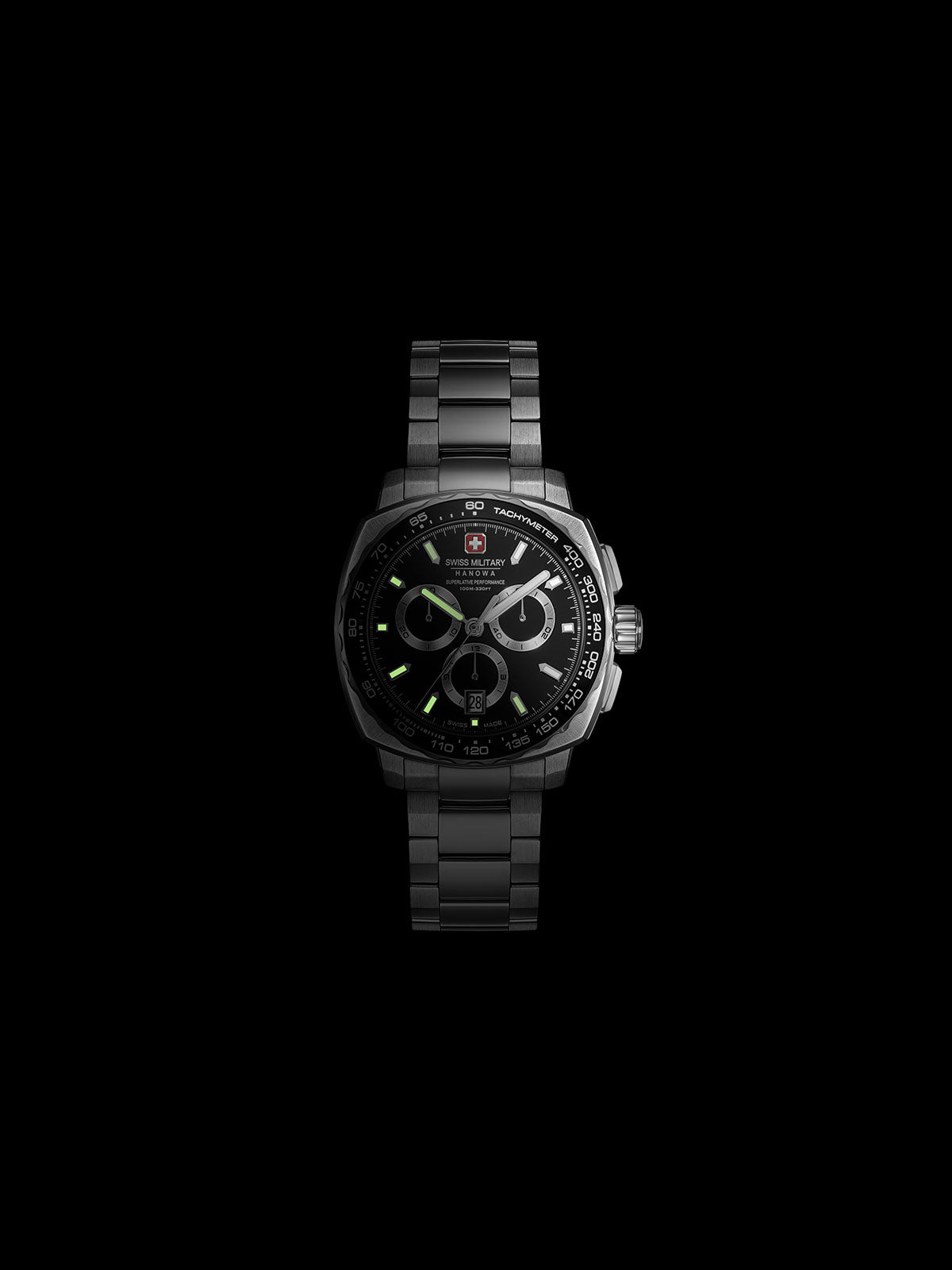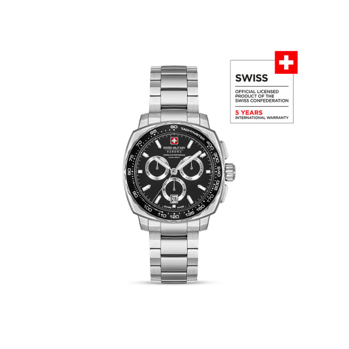 SWISS MILITARY HANOWA SPEEDWELL SMWGI0006802: SWISS MADE KVARCNI MUŠKI SAT, HRONOGRAF, CRNI BROJČANIK