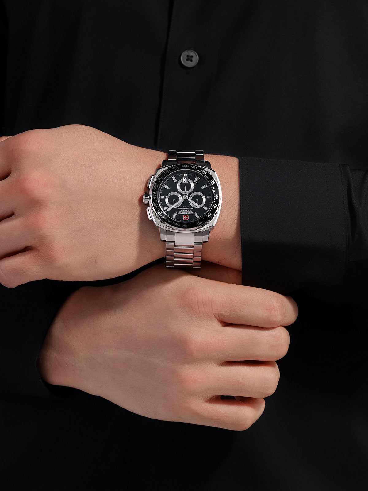 SPEEDWELL ima kućište od nerđajućeg čelika prečnika 41mm u obliku zaobljenog kvadrata i crni brojčanik. Ovaj hronograf je definicija preciznosti. Fiksni okvir kučišta sa tahimetrom poboljšava dizajn usmeren na performanse, dok fasetirani detalji dodaju prefinjenost. Sa narukvicom od nerđajućeg čelika, safirnim staklom i vodootpornošću od 10 ATM, kombinuje robusnu izdržljivost brenda sa elegantnom sofisticiranošću.