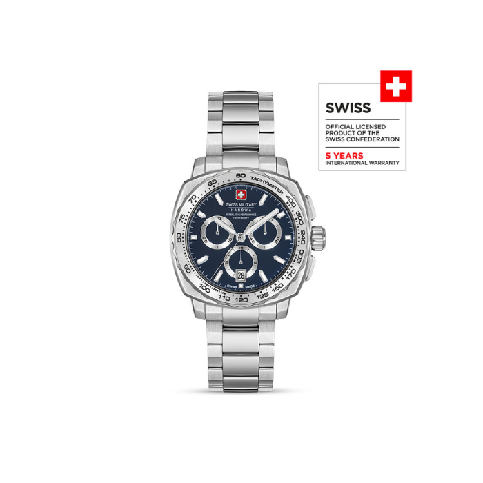 SPEEDWELL ima kućište od nerđajućeg čelika prečnika 41mm u obliku zaobljenog kvadrata i teget brojčanik. Ovaj hronograf je definicija preciznosti. Fiksni okvir kučišta sa tahimetrom poboljšava dizajn usmeren na performanse, dok fasetirani detalji dodaju prefinjenost. Sa narukvicom od nerđajućeg čelika, safirnim staklom i vodootpornošću od 10 ATM, kombinuje robusnu izdržljivost brenda sa elegantnom sofisticiranošću.