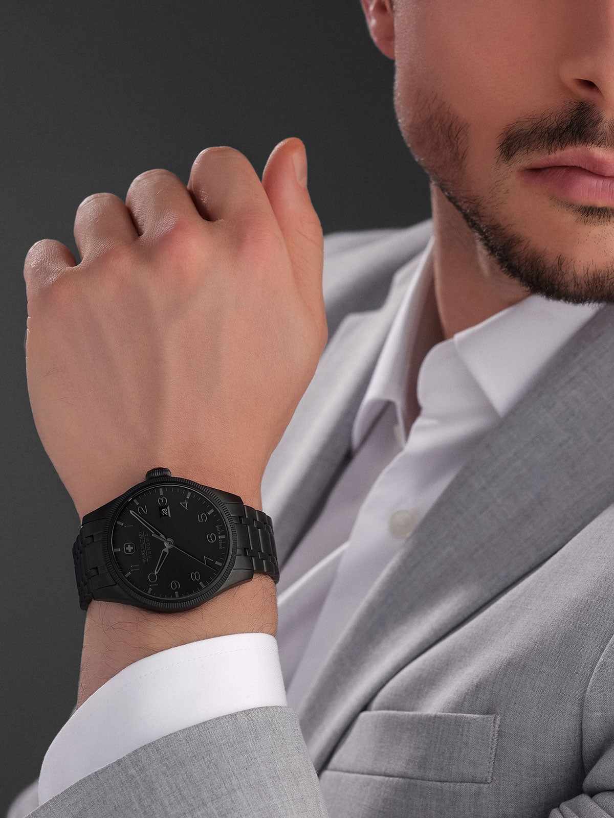THUNDERBOLT STEALTH opravdava svoje ime: taman, smeo i spreman na akciju. Crno kućište od nerđajućeg čelika prečnika 43mm sa izrezbarenom koronom, safirno staklo, vodootpornost do 100m, displej za datum na poziciji 3H su karakteristike ove ekskluzivne capsule kolekcije. Sat idealan za one koji se kreću sa tihim samopouzdanjem.