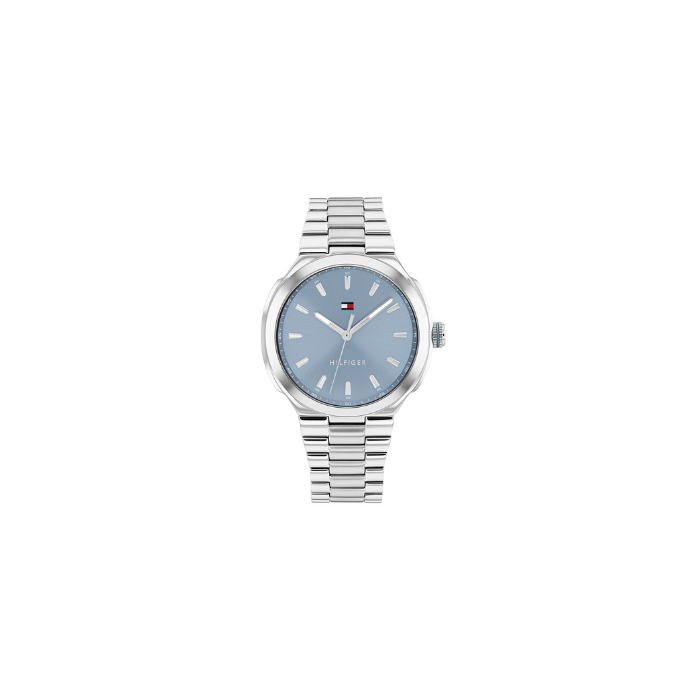 Tommy Hilfiger ženski kvarcni sat ima 36mm srebrno kućište, plavi brojčanik, mineralno staklo i srebrnu narukvicu od nerđajućeg čelika. Vodootpornost sata je 3 ATM.